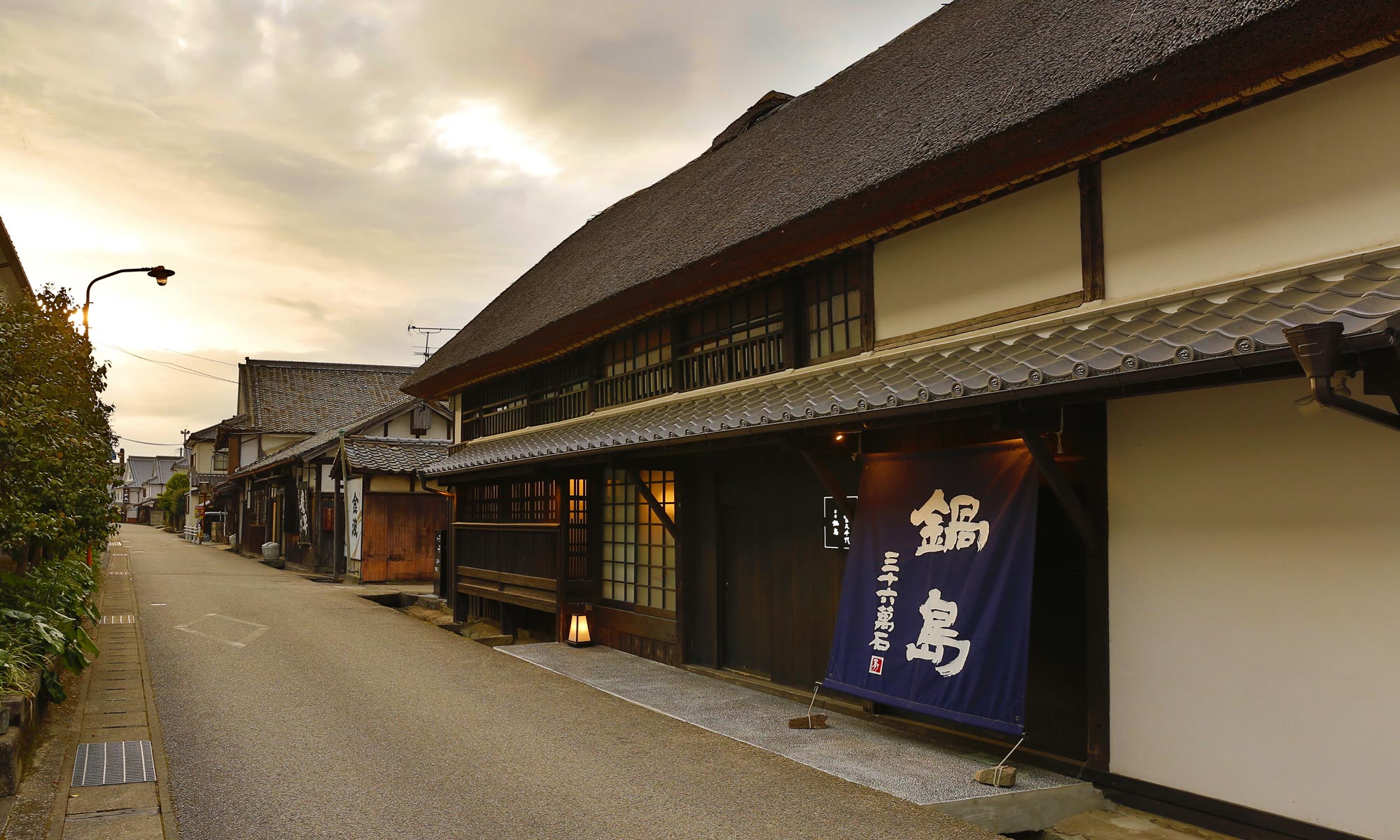 江戸時代に長崎街道多良住還の宿場町や港町として栄えたここ肥前浜宿(ひぜんはましゅく)。日本酒「鍋島」を手掛ける「富久千代酒造」と「御宿 富久千代」は、その一角にあります。なかでも酒蔵通りは白壁の酒蔵や茅葺きの民家などが数多く残る町並みで歴史的価値が高く、国の重要伝統的建造物群保存地区に選定されています。